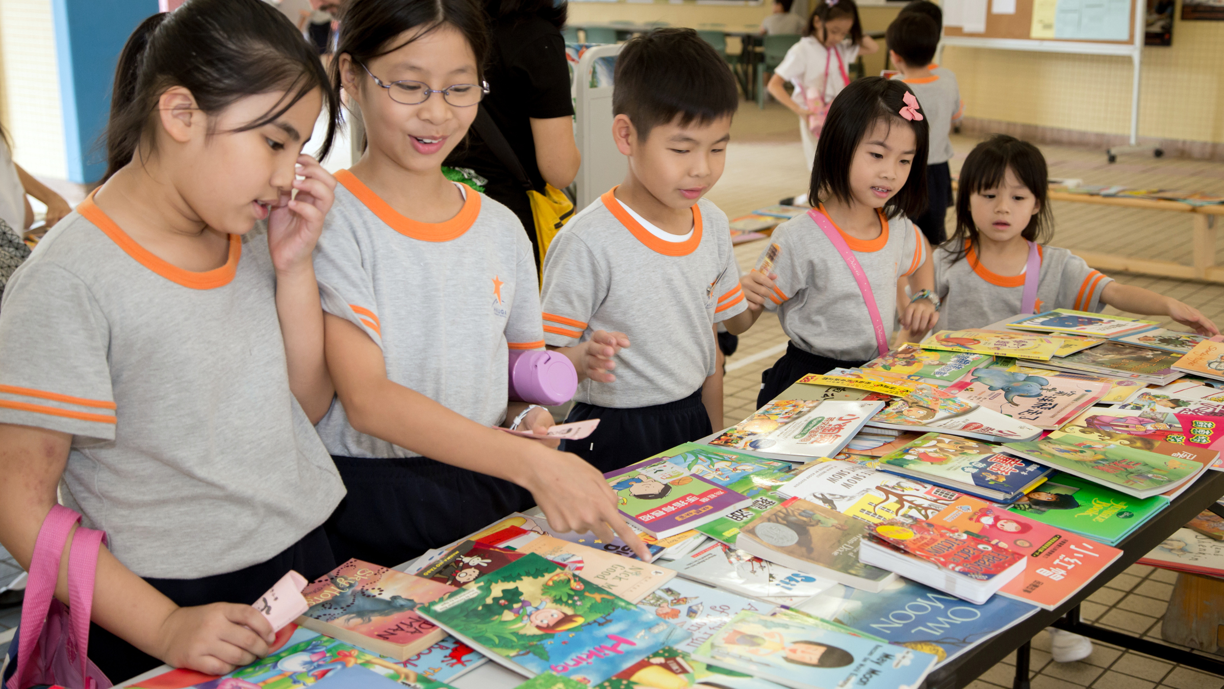 PS teachers organized an activity called ‘Book Swop’. In the activity, all the students were encouraged to bring their old books to swop with their schoolmates; it aimed at sharing and recycling. It was no restrictions on subjects and reading levels, the children just chose ‘what they want and what they love to read’. Consequently, children felt exciting that they were free to have their own choices and they experienced a fruitful time during this activity!